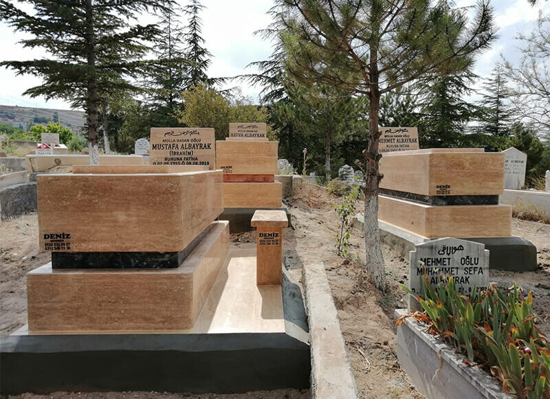 Doğal görünümüyle öne çıkan traverten, sıcak tonları sayesinde farklı bir estetik sunar. Doğallığı sevenler için traverten mezar modelleri özel bir tercih olabilir.
